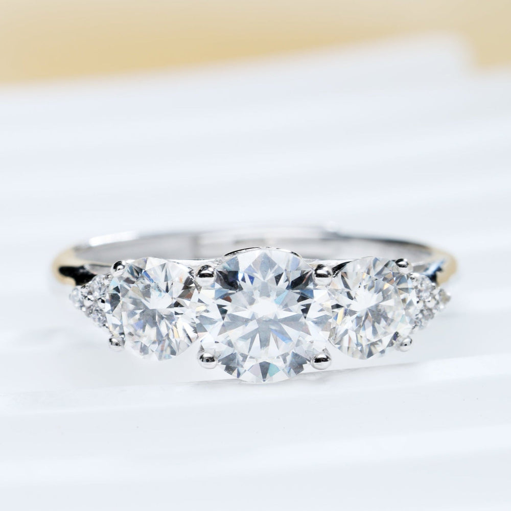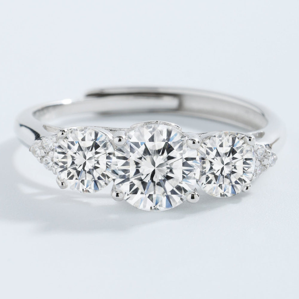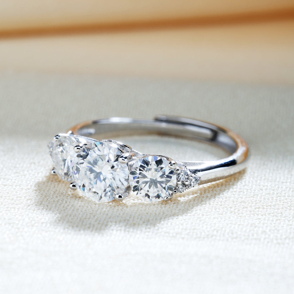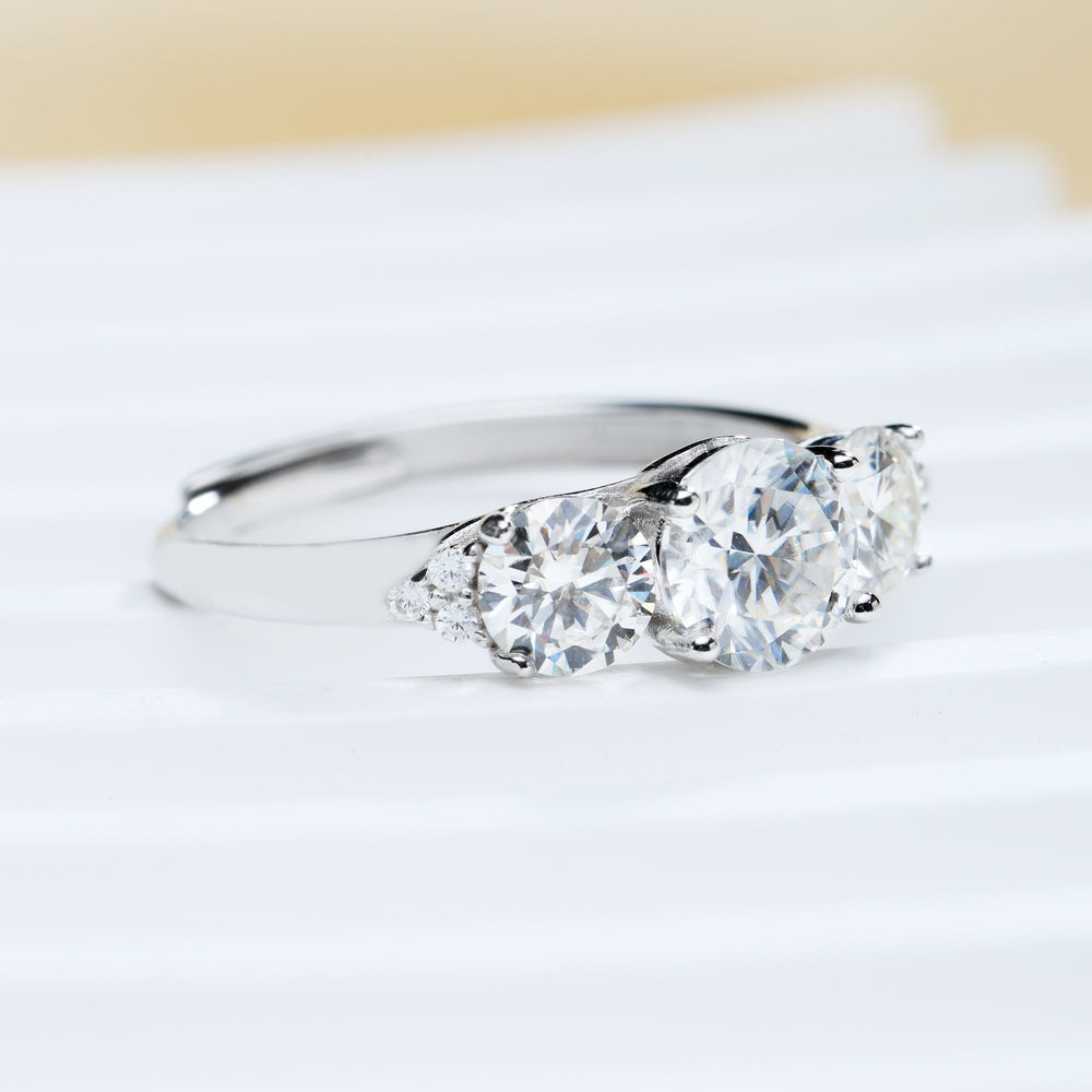 Whether it's an engagement Ring, an anniversary gift, or a reward for yourself, the 3 Stone All Synthetic Moissanite Ring is a gift full of thought. It is not only a symbol of eternal love and commitment, but also a perfect expression of your unique taste.