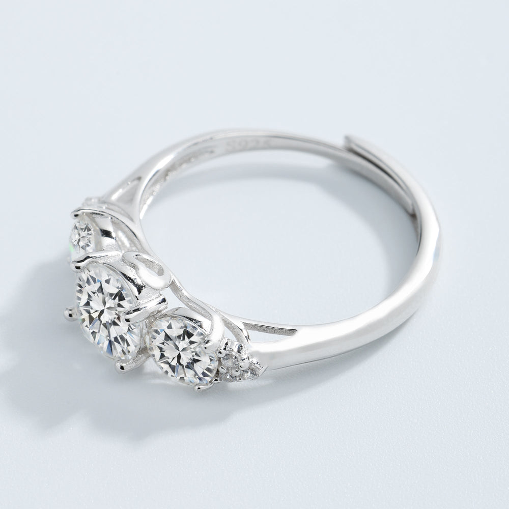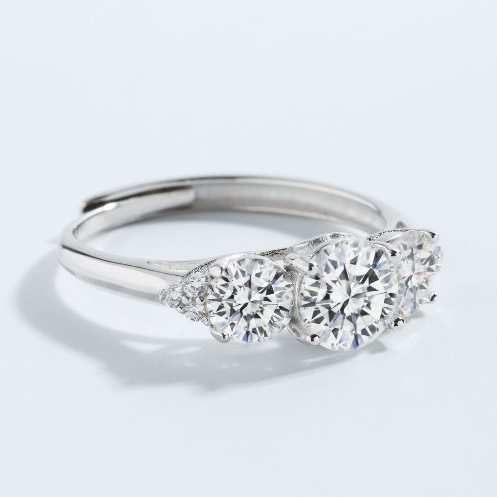 The 3 Stone All Synthetic Moissanite Ring has three brilliant Moissanite stones at its core, symbolizing the past, present and future, a perfect expression of eternity and commitment. Each Moissanite has been carefully cut and polished, emitting a dazzling light, like three precious memories, connecting your good times.