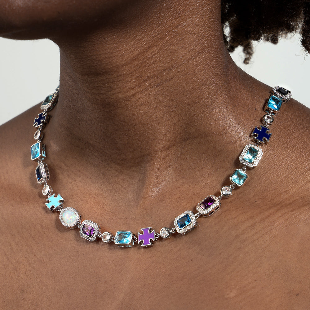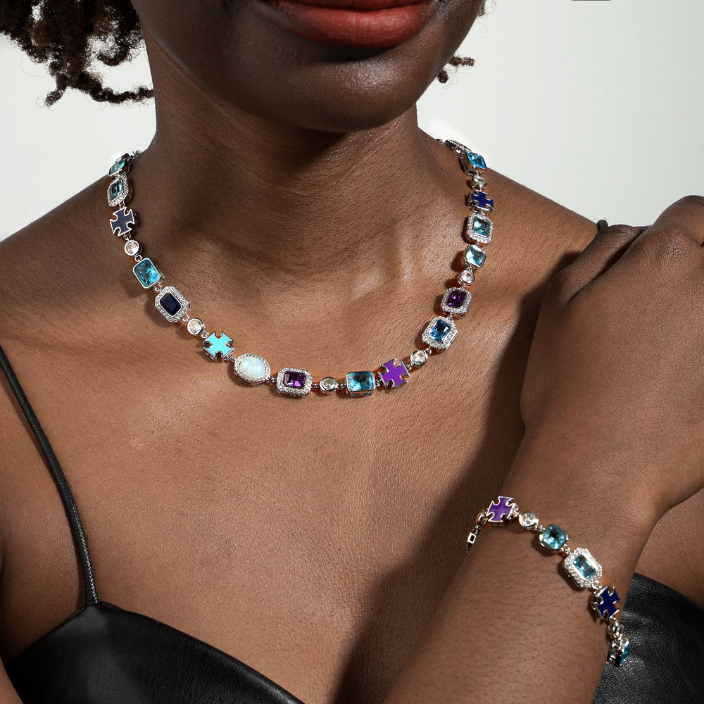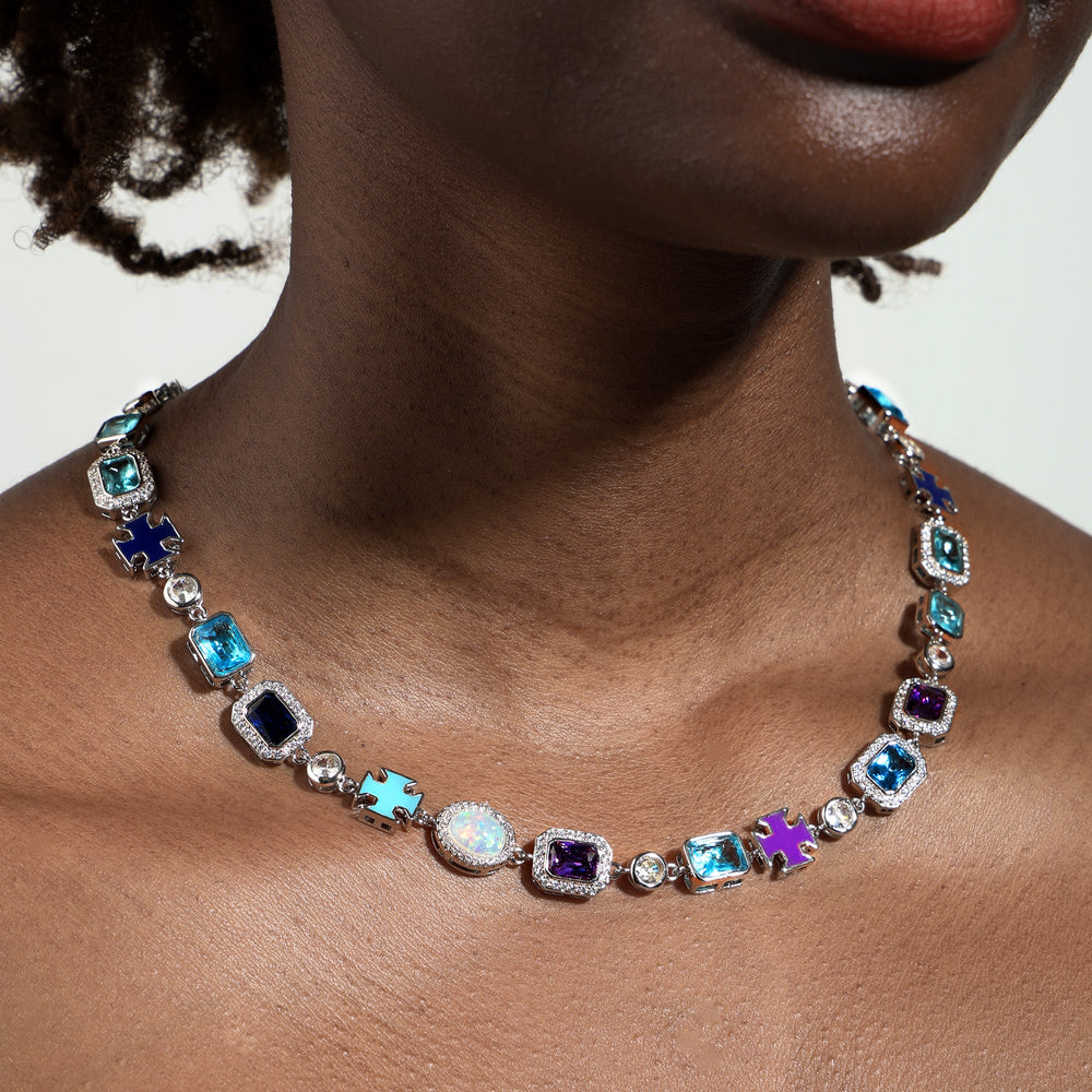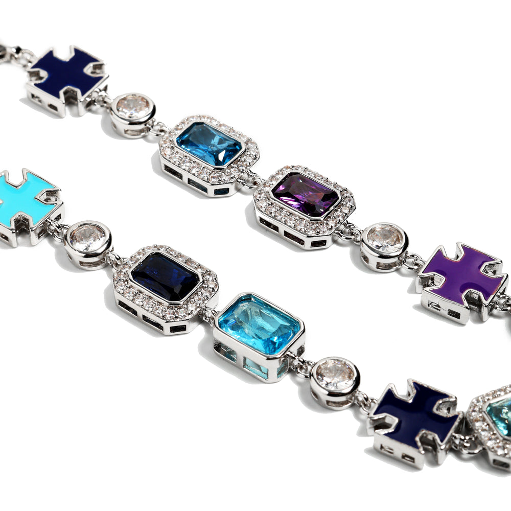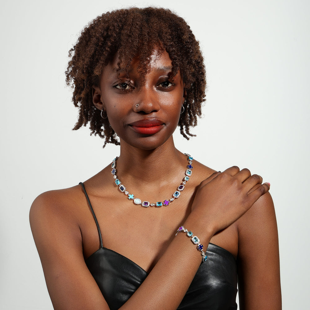 This necklace embodies beauty and sophistication. This piece features a series of colored gemstones, carefully placed to show off the natural brilliance ✨✨of the gemstone, perfect for individual wear and layering. Hypoallergenic, dull, water resistant, although sweat resistant, can be worn in water, but do not over-expose, gently handle, maintain luster, luster, to ensure product life.