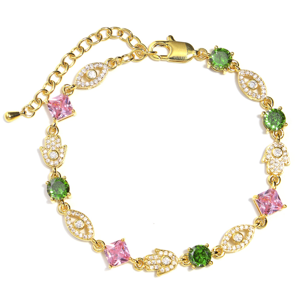 Shield yourself in style with this mystical set featuring the Hamsa (universal protection) and Evil Eye (ward off negativity), adorned with sparkling peridot and pink tourmaline gemstones. Each piece is crafted with intention, blending spiritual symbolism with modern elegance.