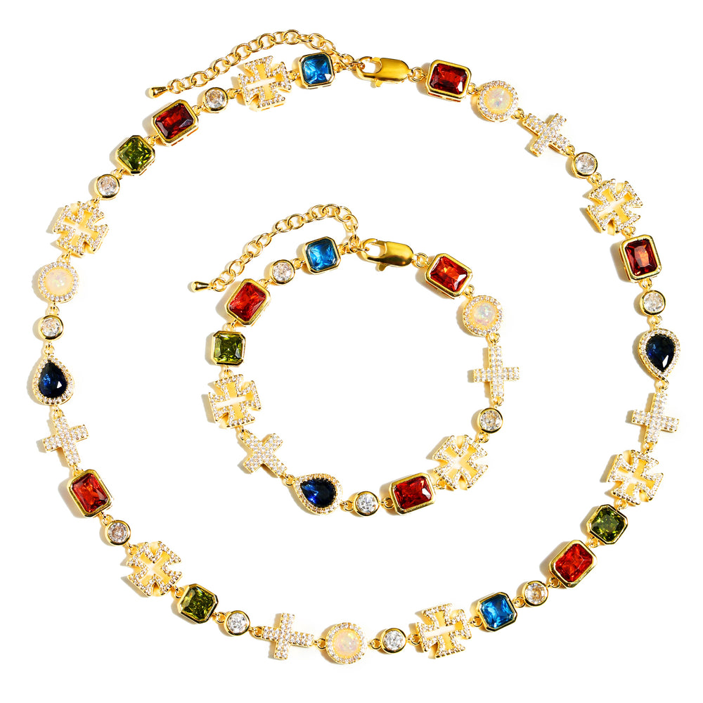 This set embodies beauty and sophistication. This piece features a series of colored gemstones, carefully placed to show off the natural brilliance✨✨ of the gemstone, perfect for individual wear and layering. Hypoallergenic, dull, water resistant, although sweat resistant, can be worn in water, but do not over-expose, gently handle, maintain luster, luster, to ensure product life.