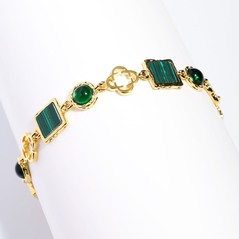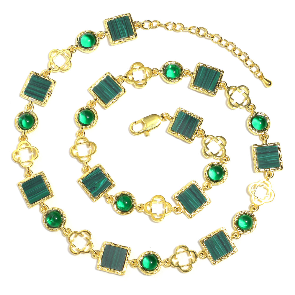 This set selects natural green quartz and malachite stones to create a geometric collision of circles and squares with exquisite cutting techniques, symbolizing balance and harmony. Each gem is artfully connected by the hollow pattern of clover, which means the flow of luck. Not only suitable for wearing alone, but also suitable for folding!