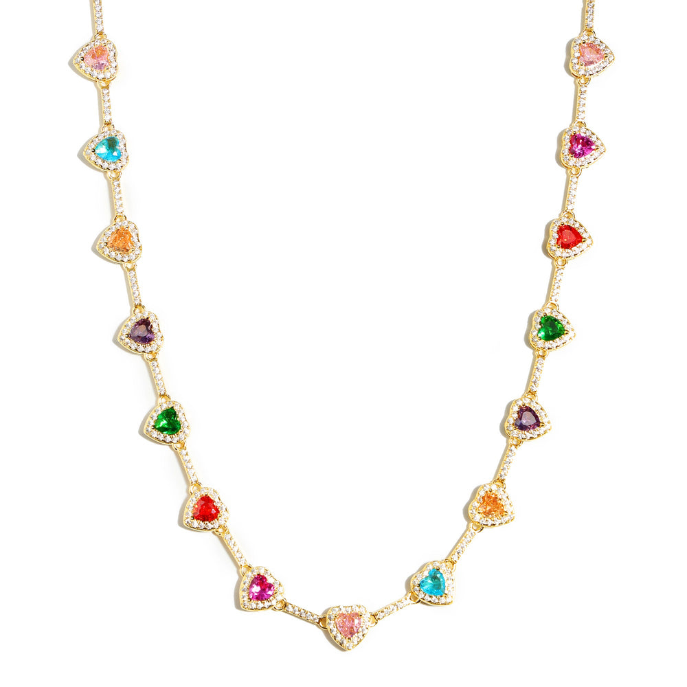 Selected rainbow🌈🌈 department gems, carefully carved into love 💗 shape, like a rainbow brilliant. The outer edge of each love is inlaid with small white diamond fragments 💎, reflecting the bright light in the sun, like love plated on the eternal halo ✨. Between the love with 925 silver plated chain series, smart and elegant, gently swaying with the pace. This is no ordinary necklace, but a rainbow you can wear, a fairy tale hidden between your collarbones." Let rainbows live in your closet and love stay close to your heart."