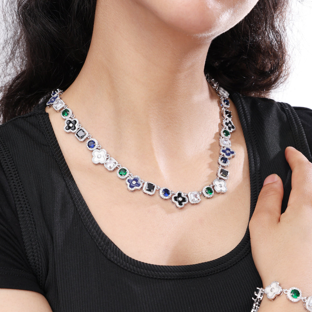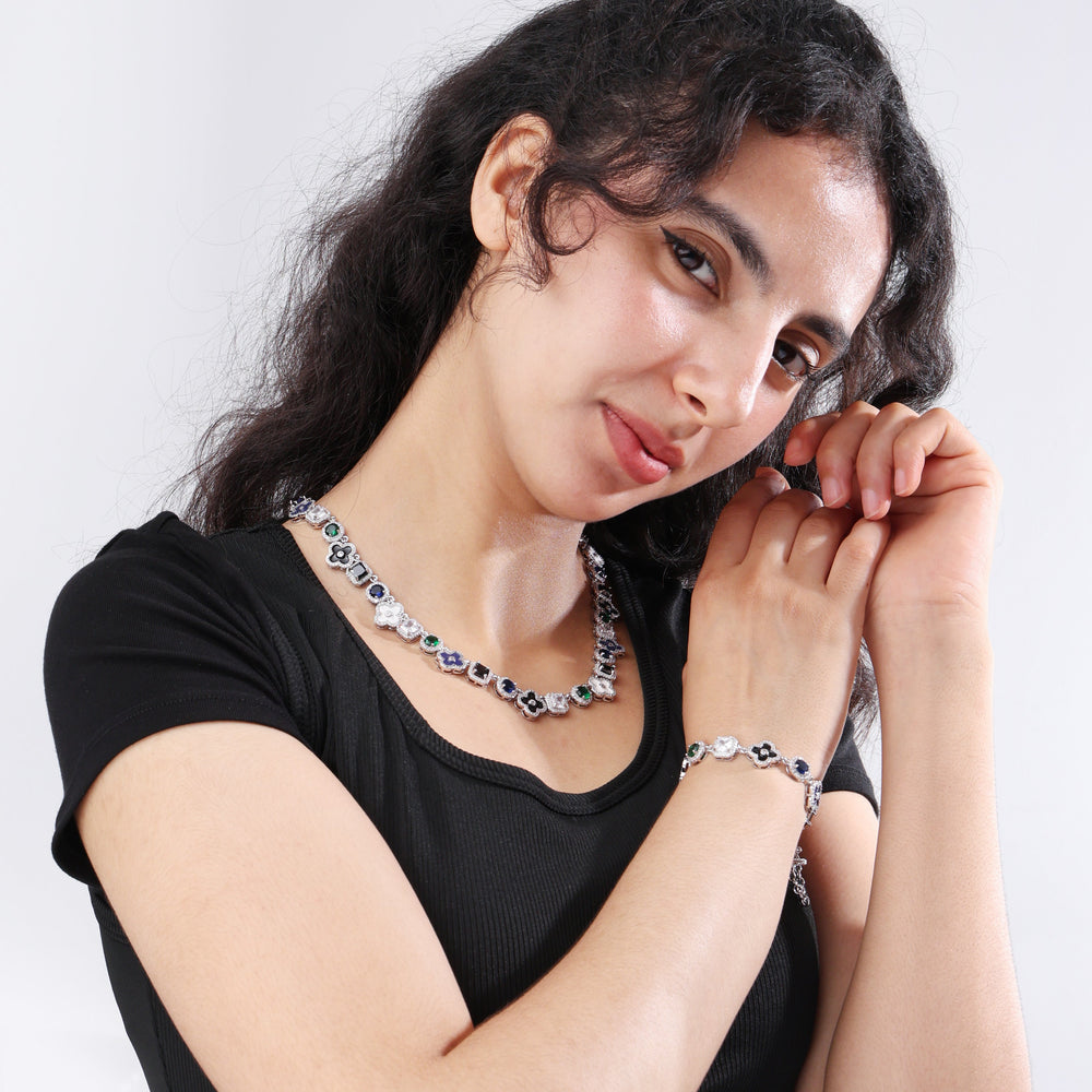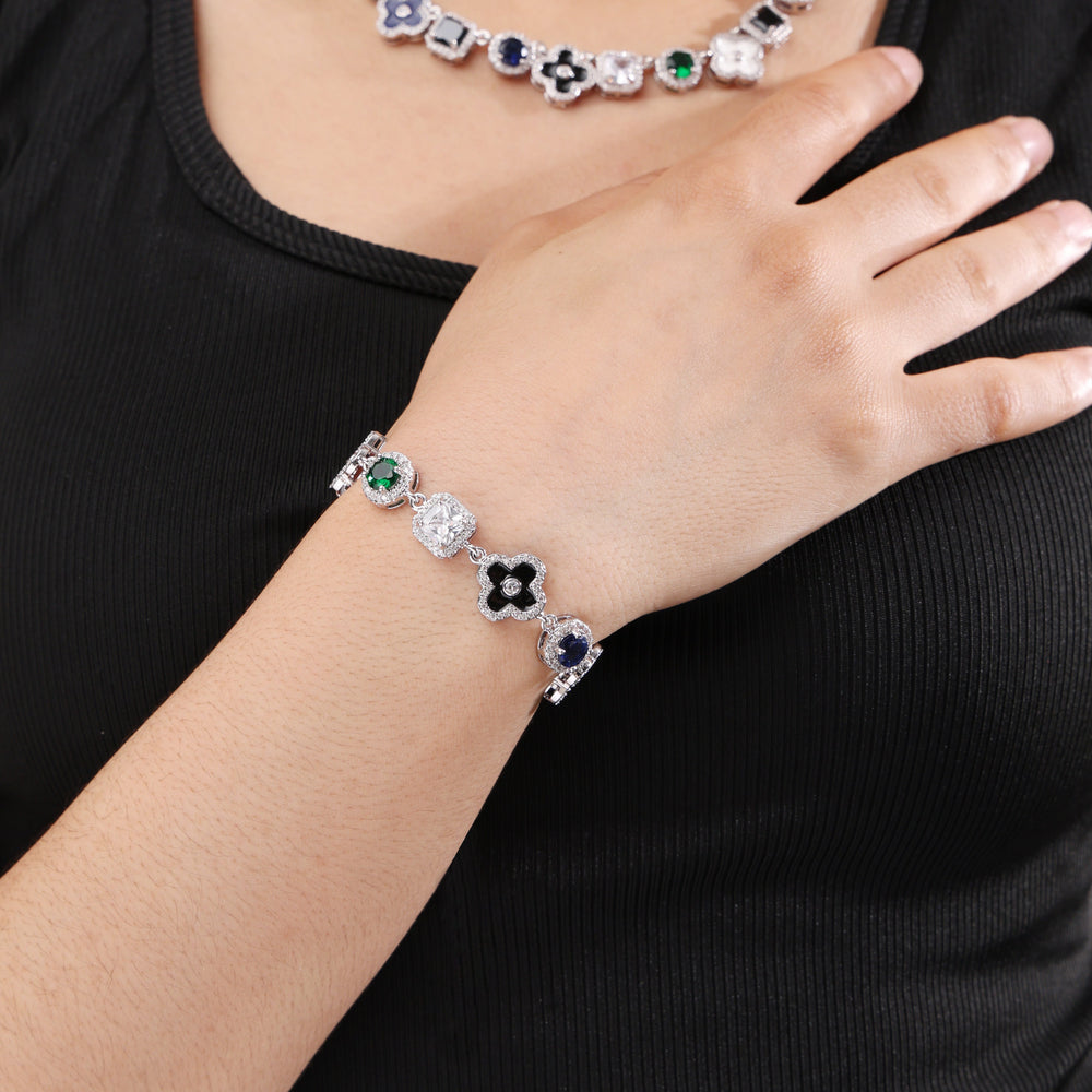 This bracelet embodies beauty and sophistication. This piece features a series of colored gemstones, carefully placed to show off the natural brilliance of the gemstone, perfect for individual wear and layering. Hypoallergenic, dull, water resistant, although sweat resistant, can be worn in water, but do not over-expose, gently handle, maintain luster, luster, to ensure product life.