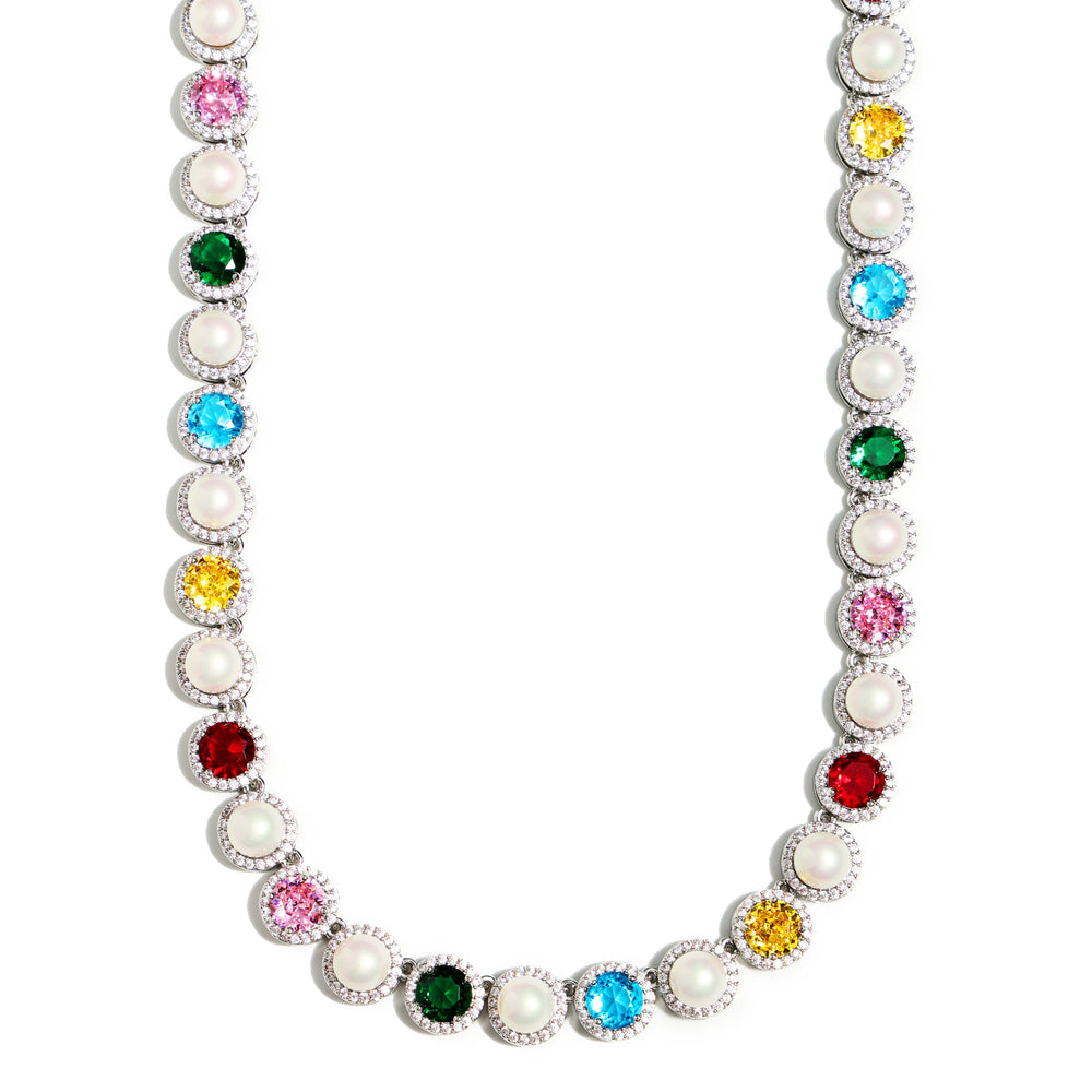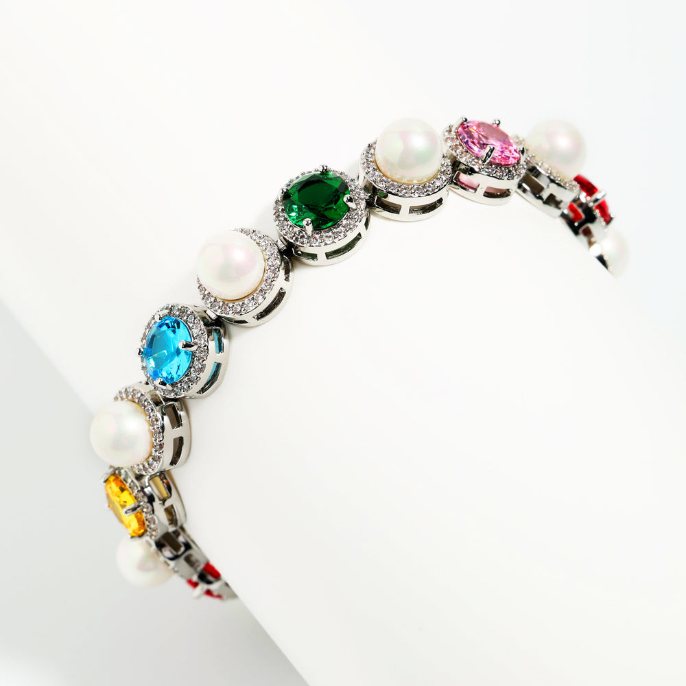 The six natural stones of bright yellow, sea blue, dark green,light pink, rose and white pearl alternate in series like musical notes, each round stone is gently surrounded by the star ring diamond. The warm pearl, the translucent color of the treasure and the bright collision of diamonds, write a tone poem of color between the collarbone,so that the colorful gems are as light as the rainbow🌈🌈 ripples.Six colors, six moods: "You don't have to choose to be a single color, life is meant to be a overturned color palette"