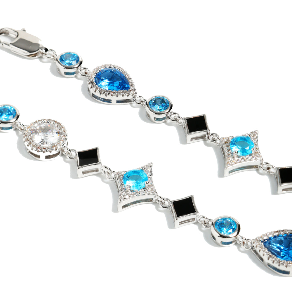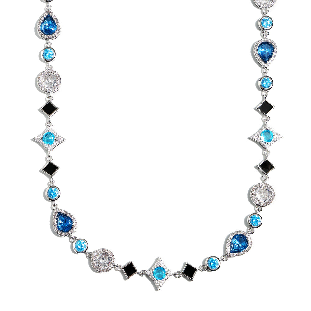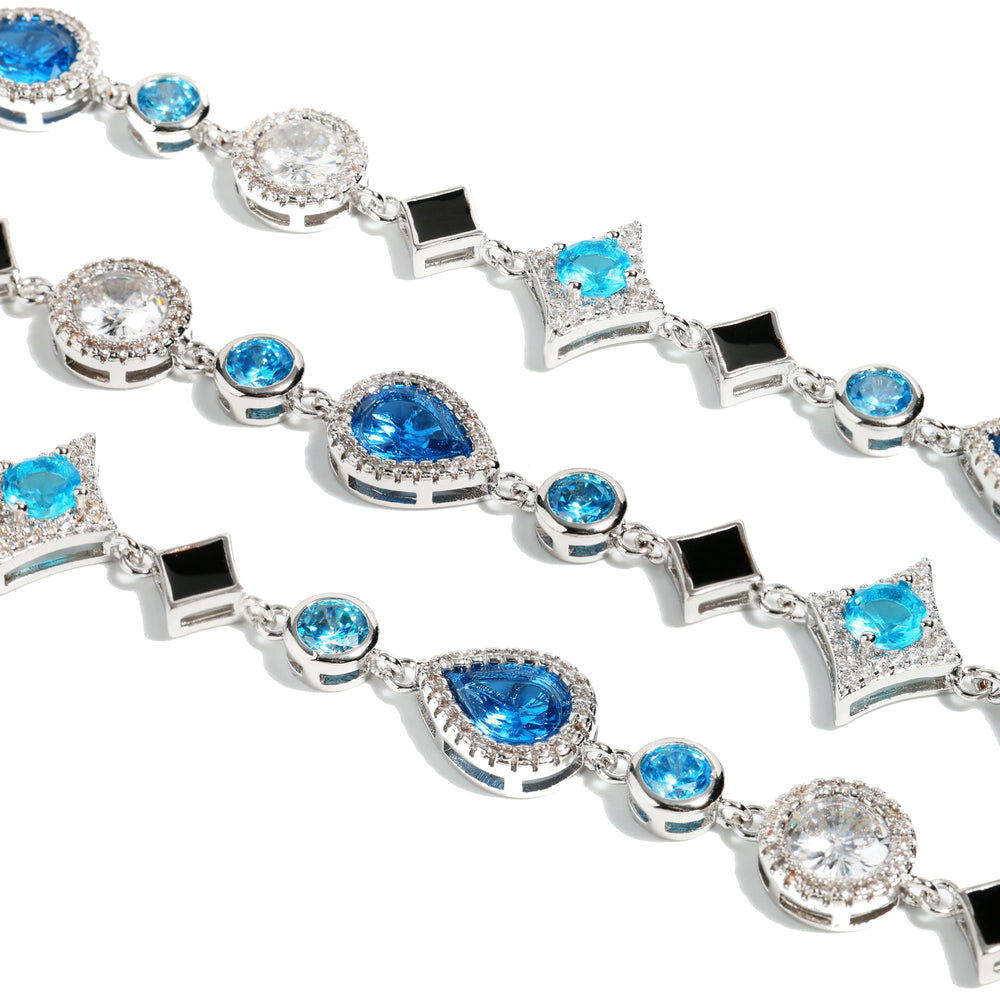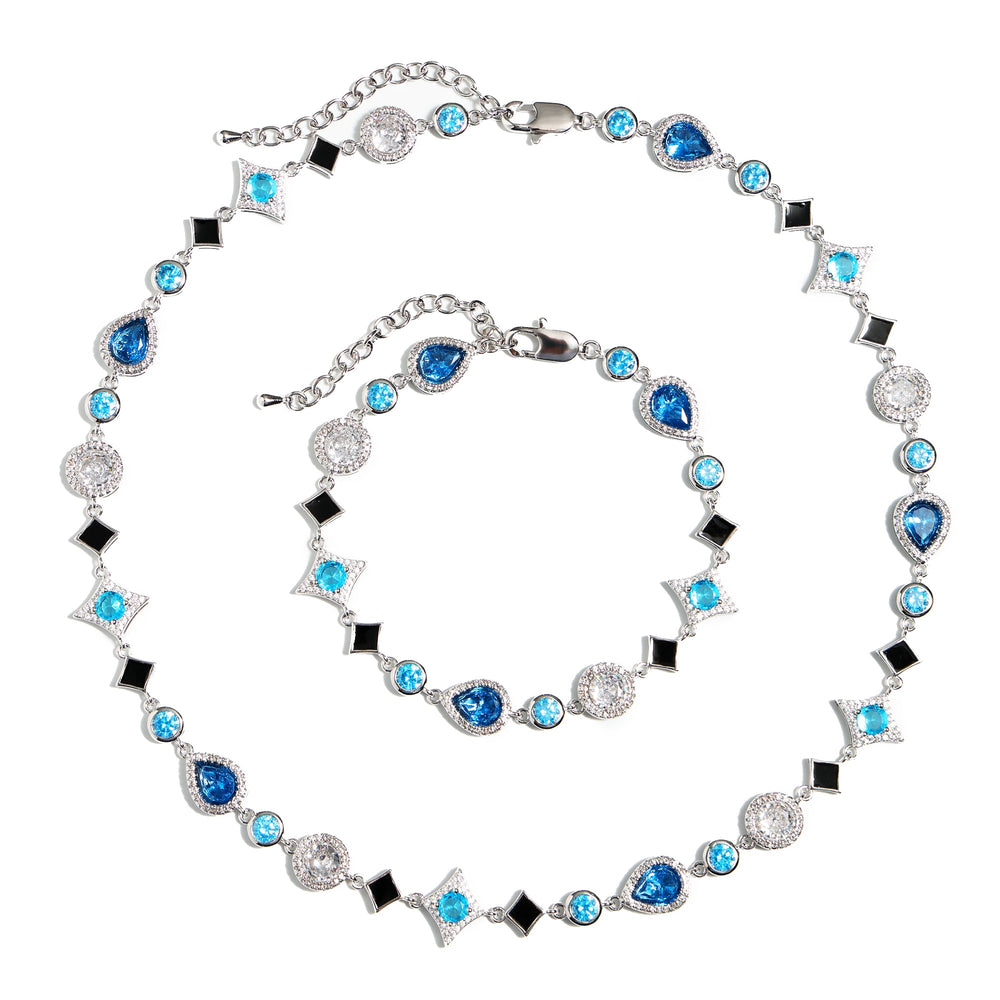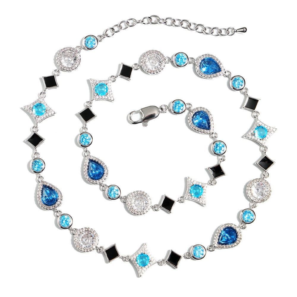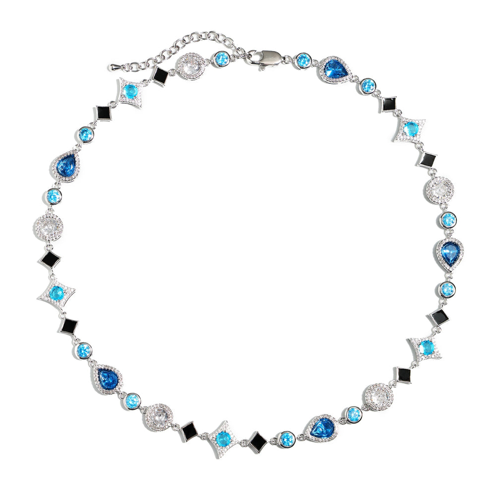 This necklace embodies beauty and sophistication. Designed in the theme of stars⭐✨✨ and set with a variety of blue stones, this piece is carefully placed to show the natural brilliance of the stones, suitable for individual wear and layering. Hypoallergenic, dull, waterproof, although sweat resistant, can be worn in water, but do not overexposure, gently handle, maintain luster, to ensure product life.